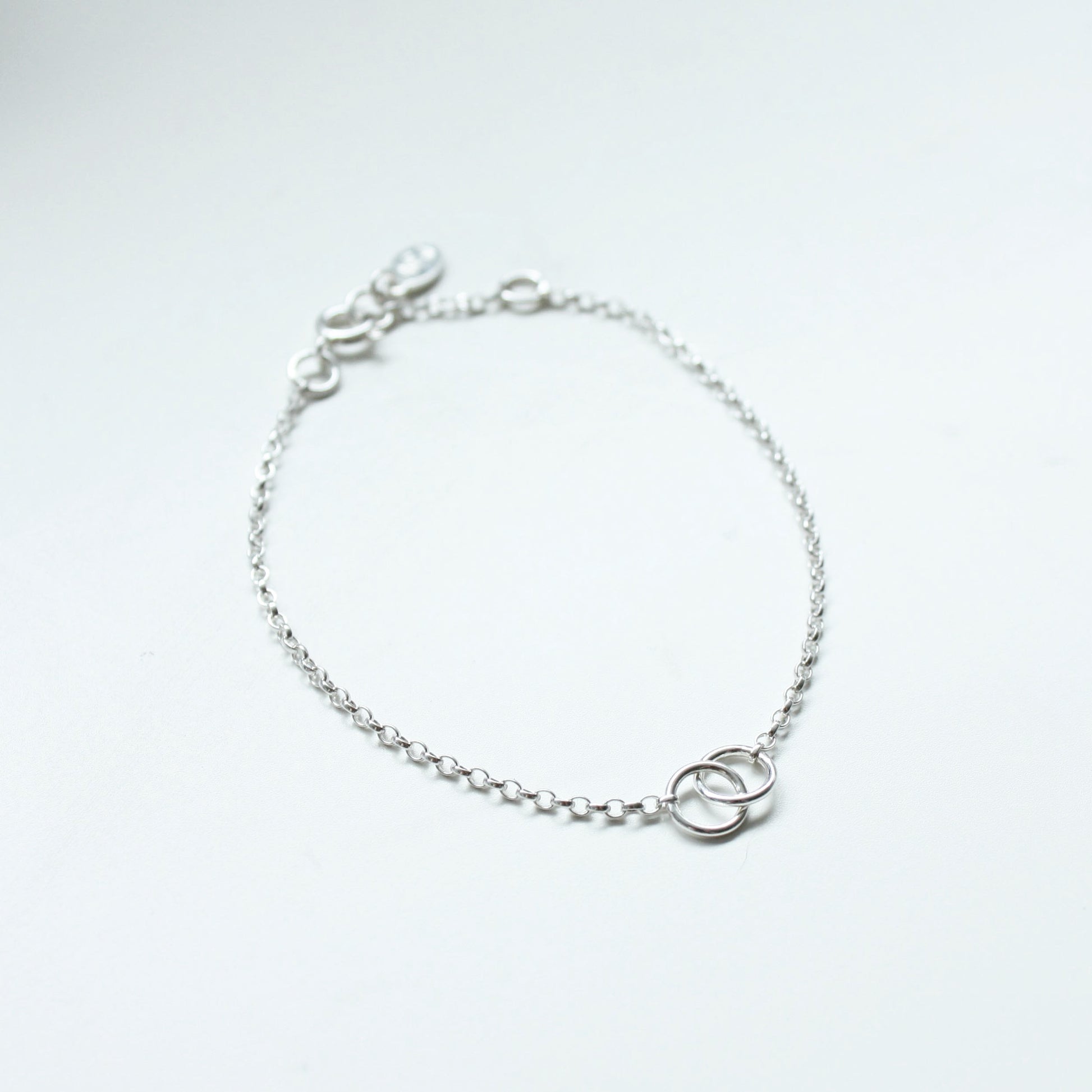 This minimalistic bracelet features two interlinked circles and looks perfect alone or stacked with other bracelets and bangles.