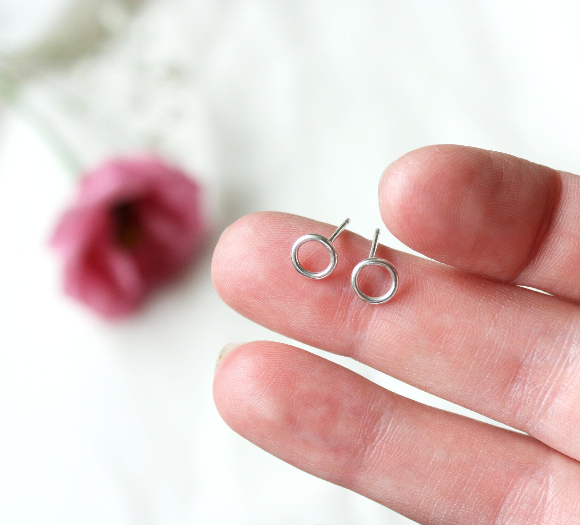 These simple, minimal yet elegant small Sterling Silver circle stud earrings are perfect for everyday wear.